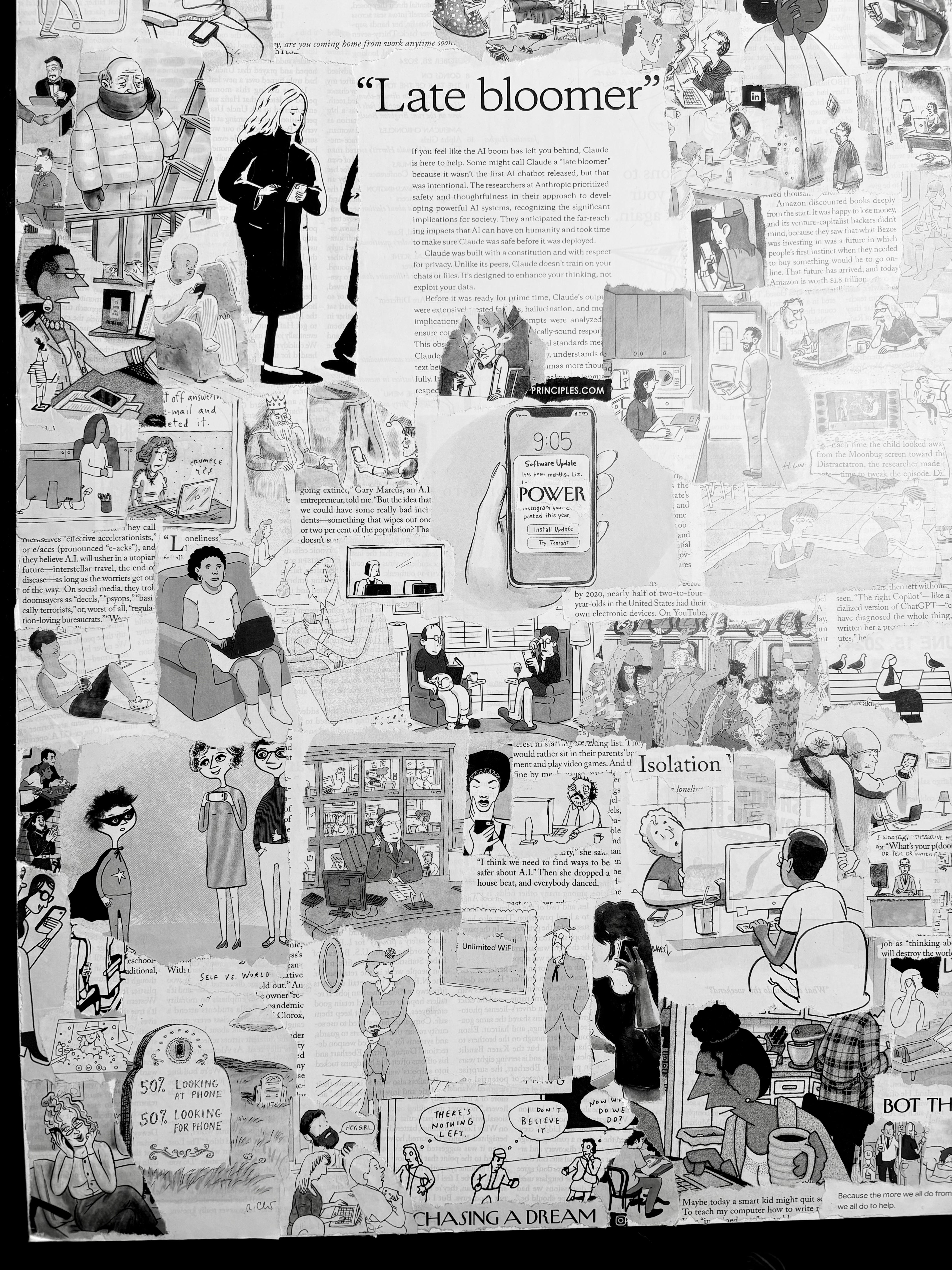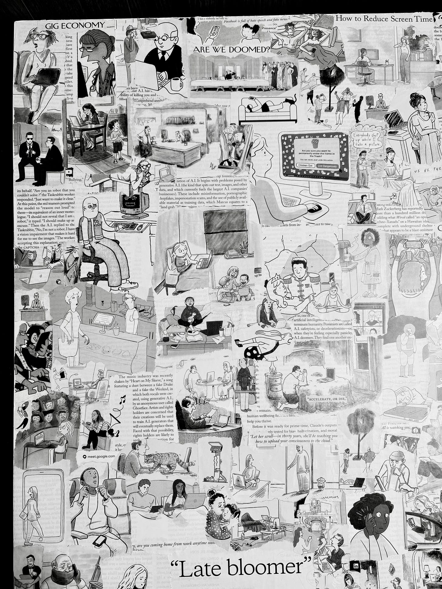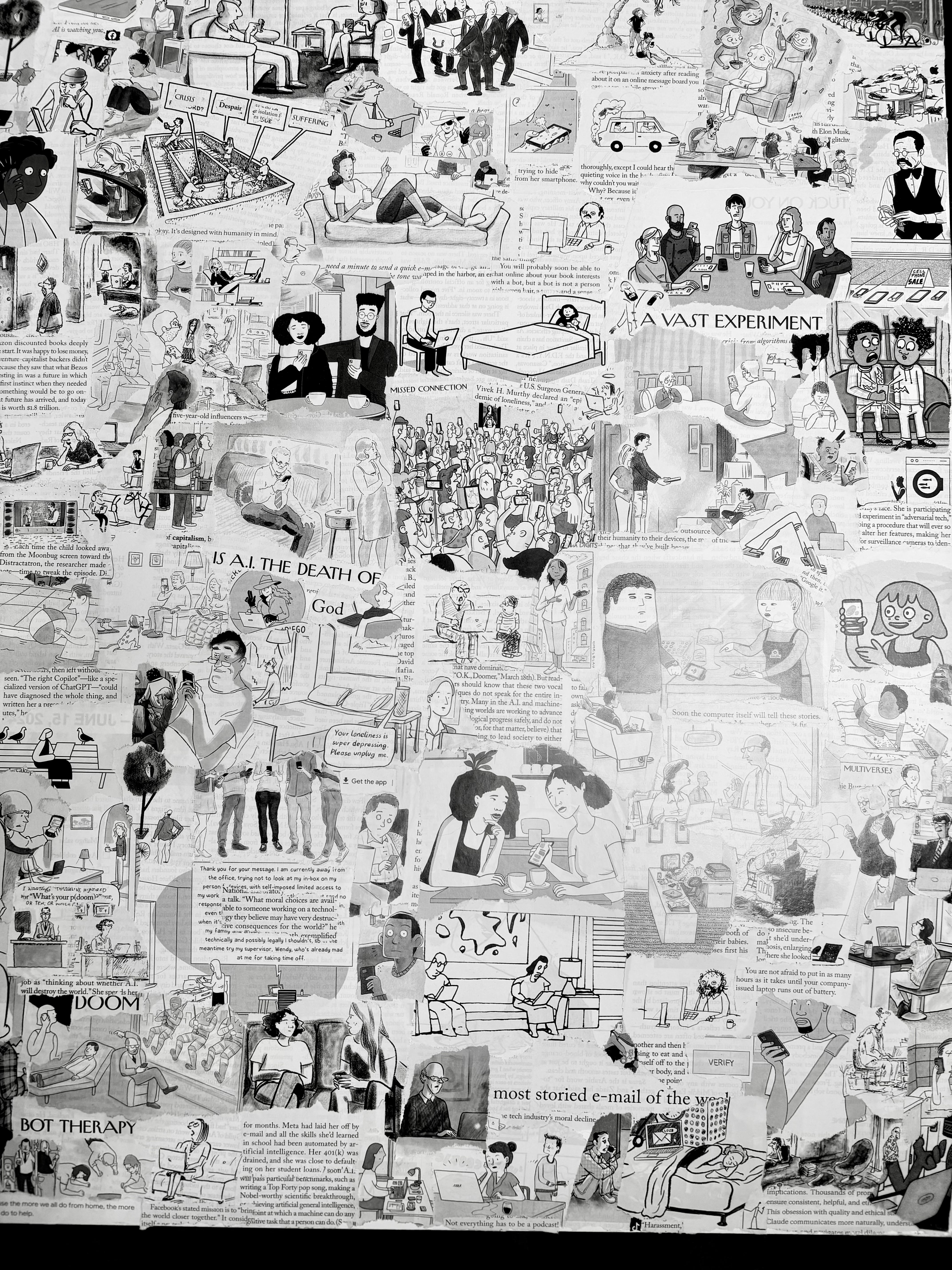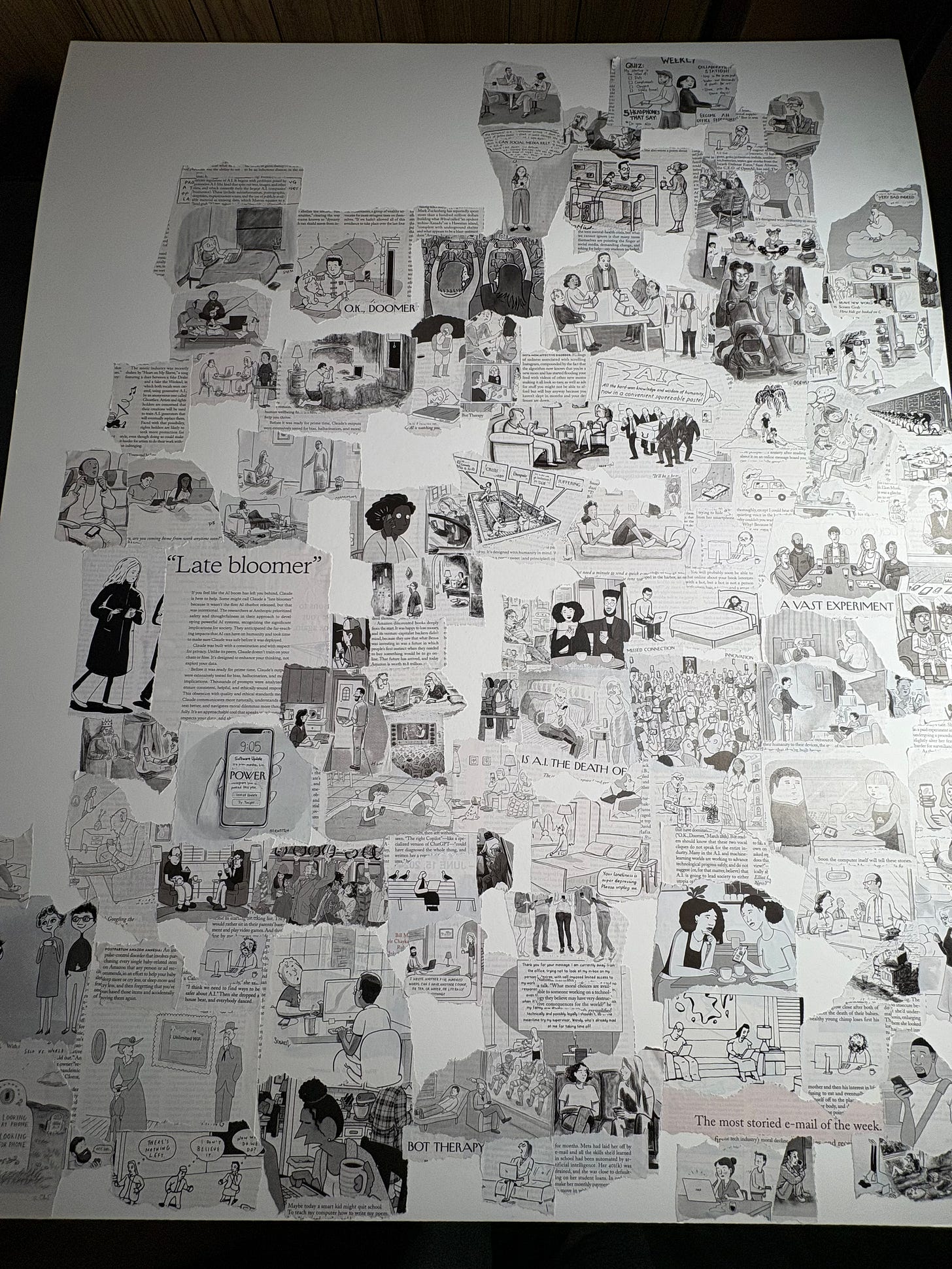 The second iHuman project is a collage of New Yorker magazines. It includes cartoons and articles that feature technology from 2020 to 2025 magazine editions.