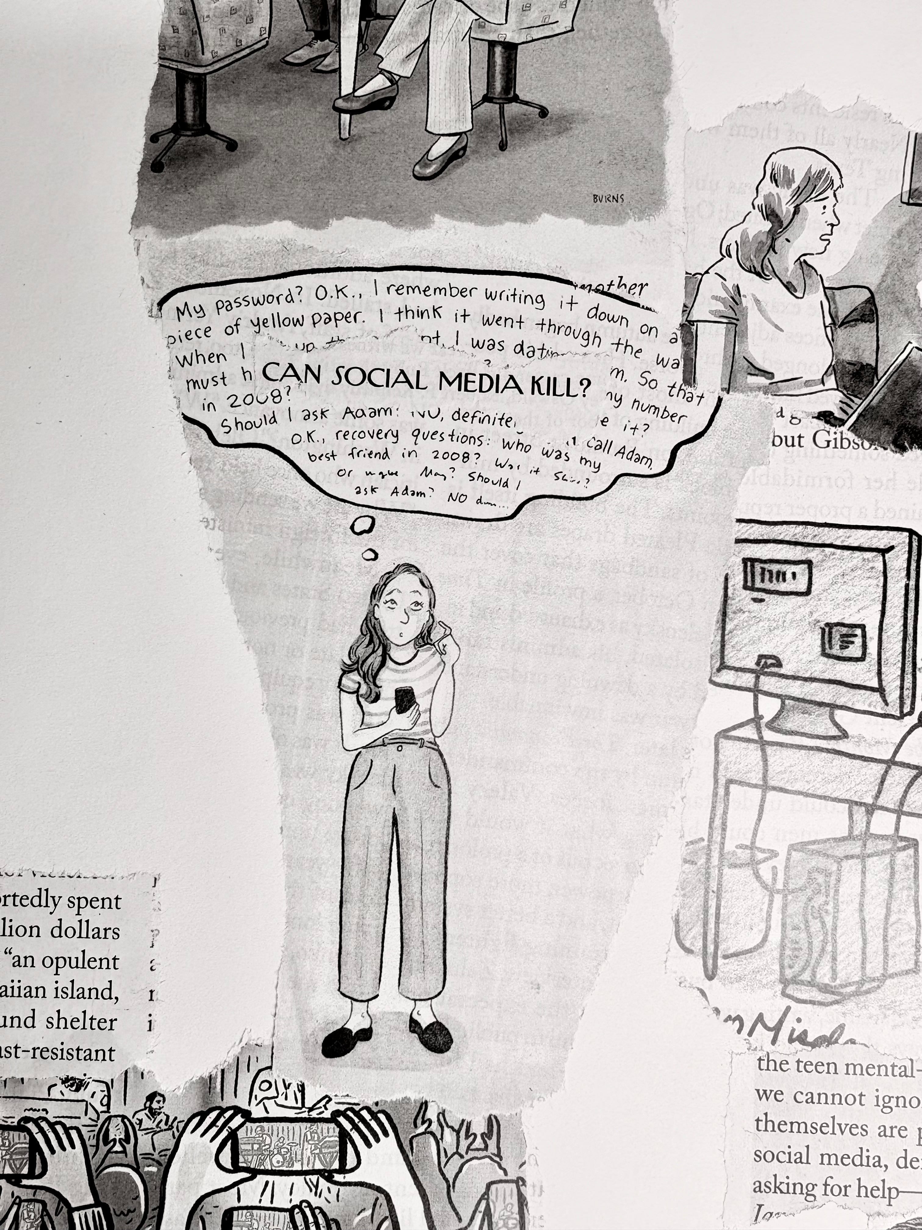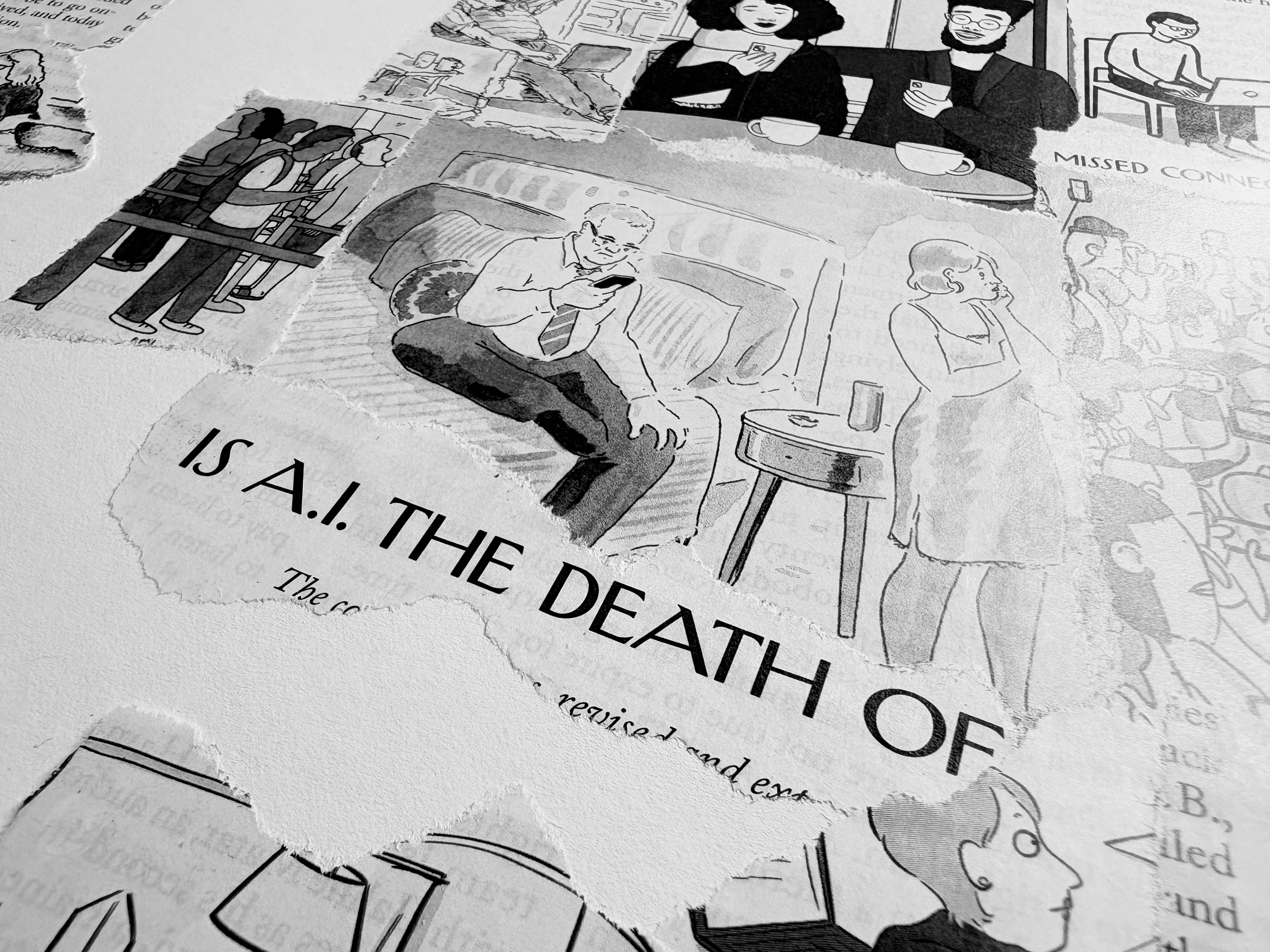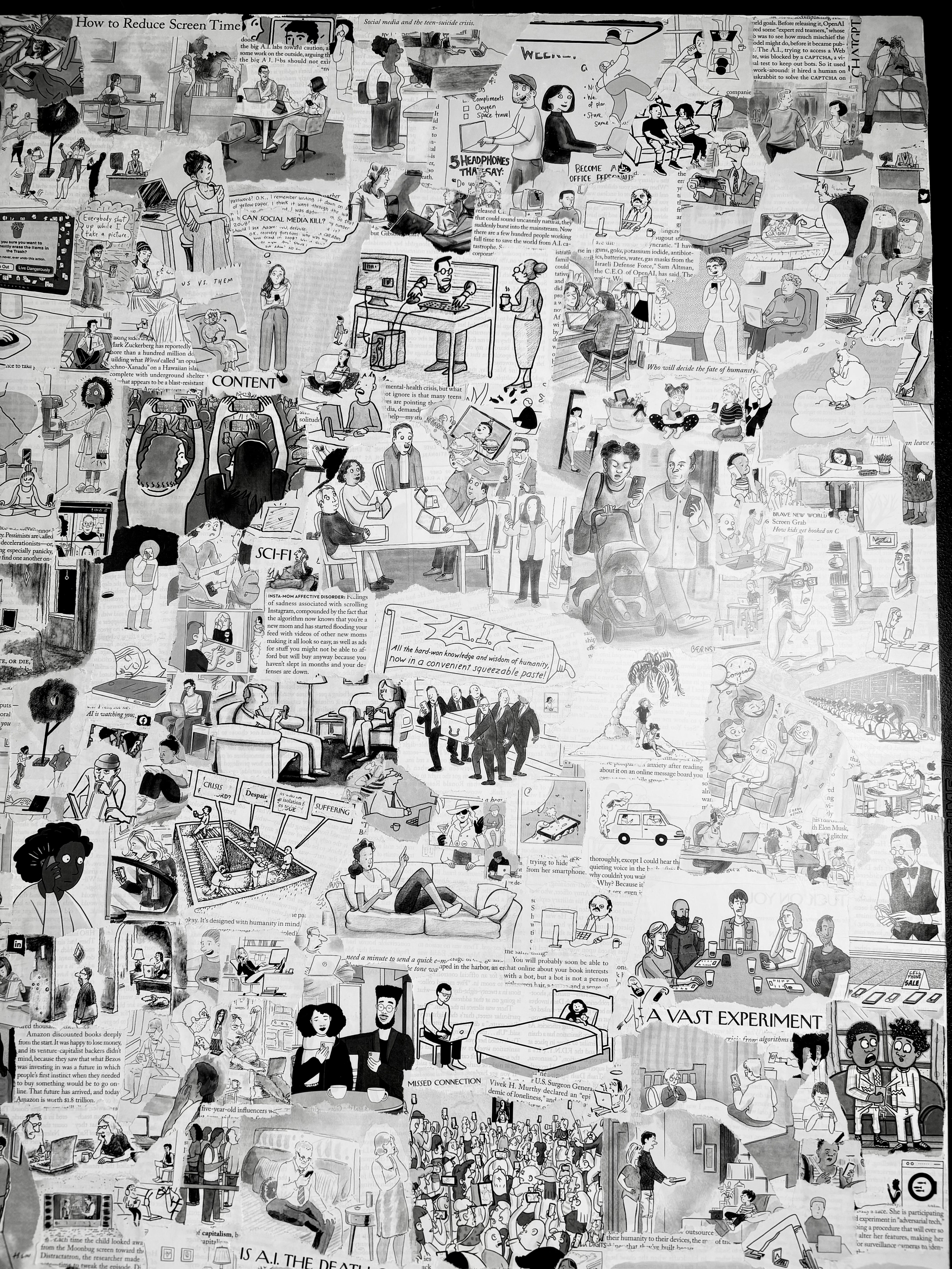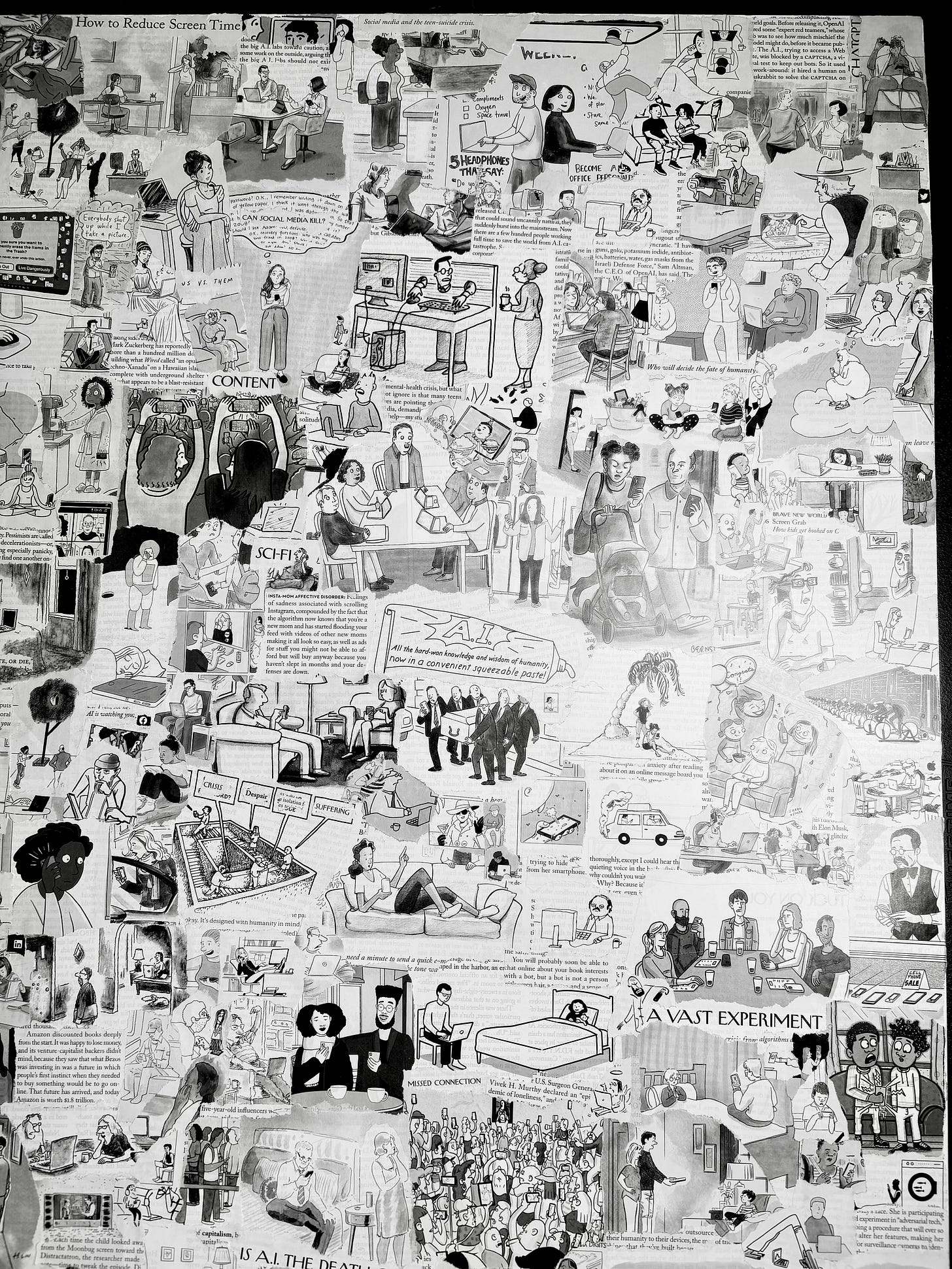 The second iHuman project is a collage of New Yorker magazines. It includes cartoons and articles that feature technology from 2020 to 2025 magazine editions.