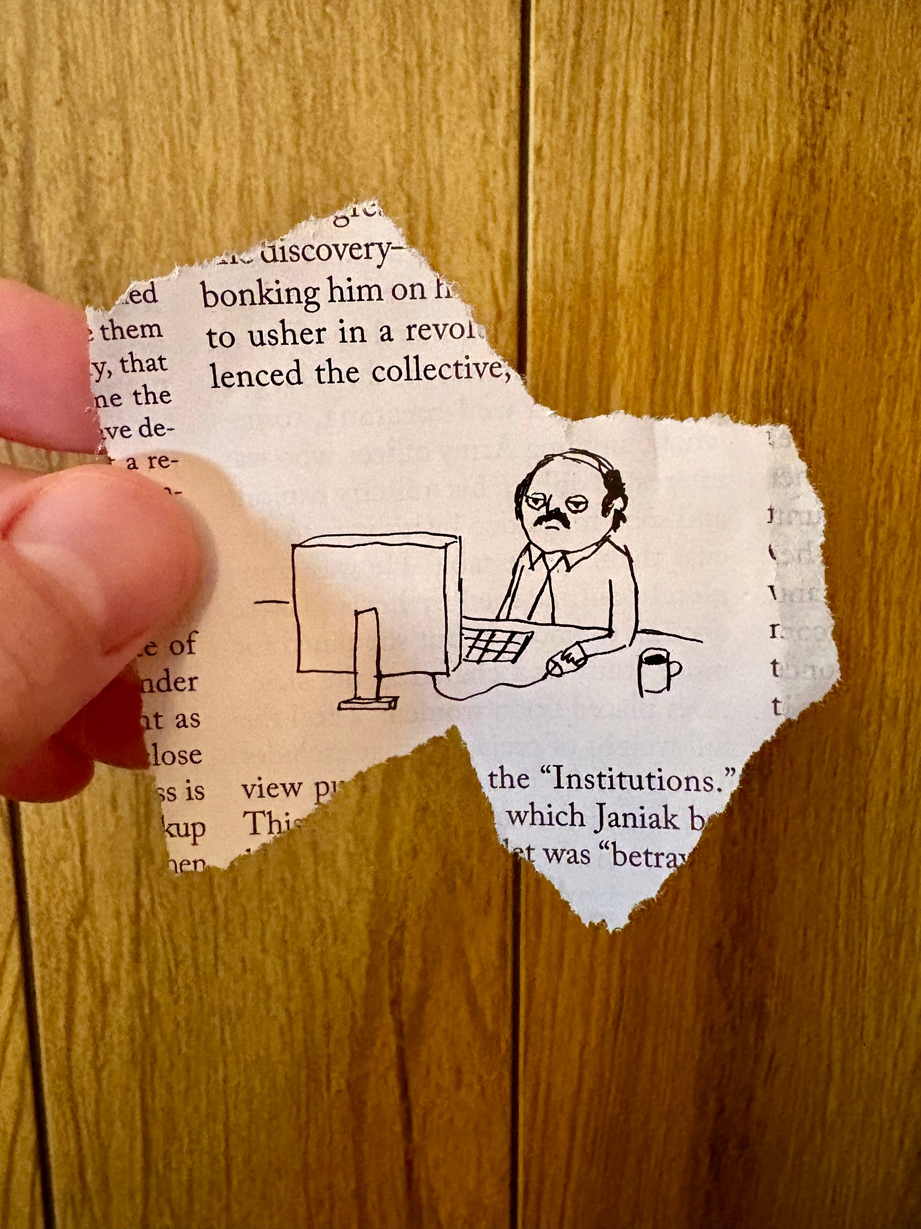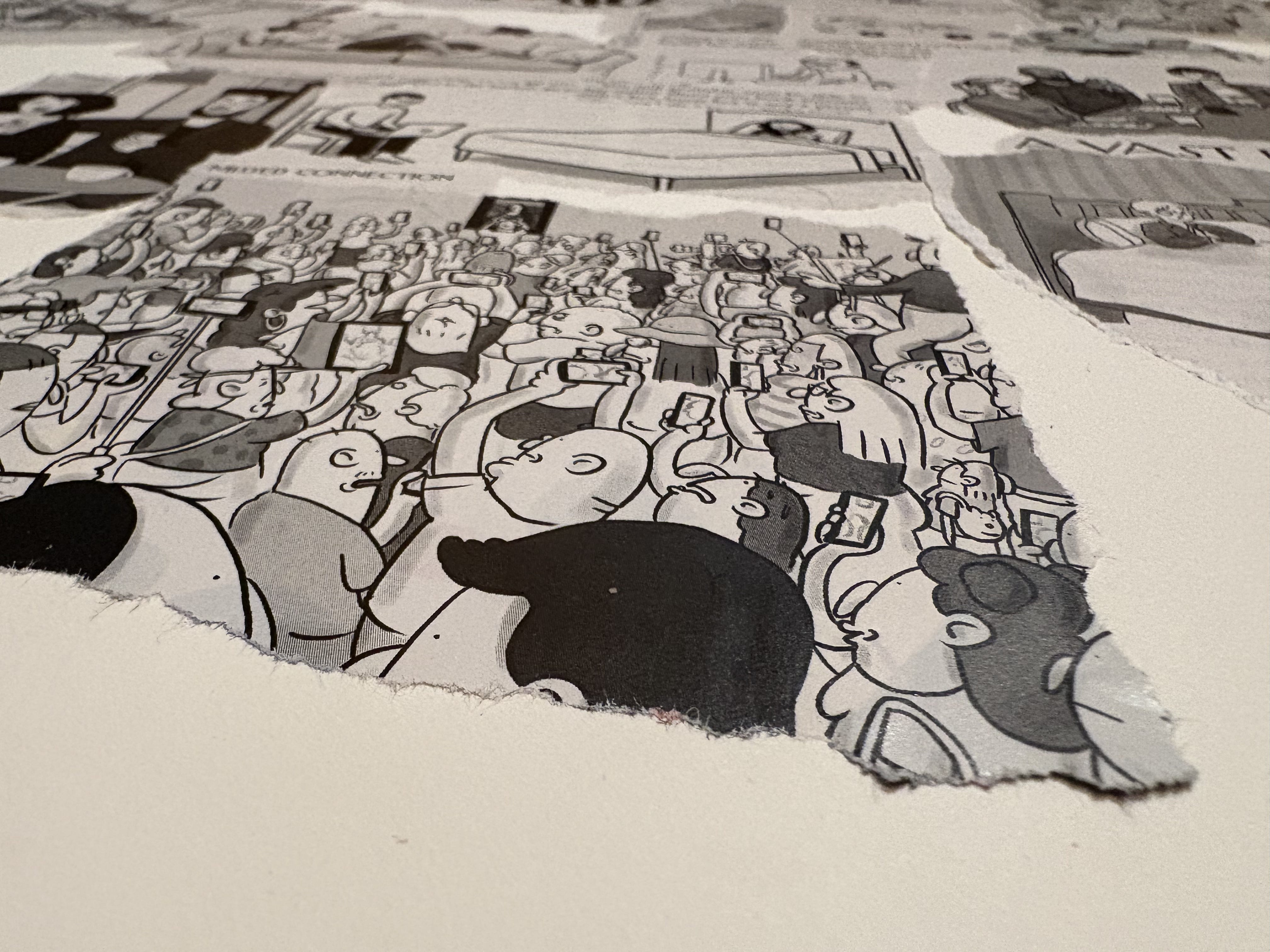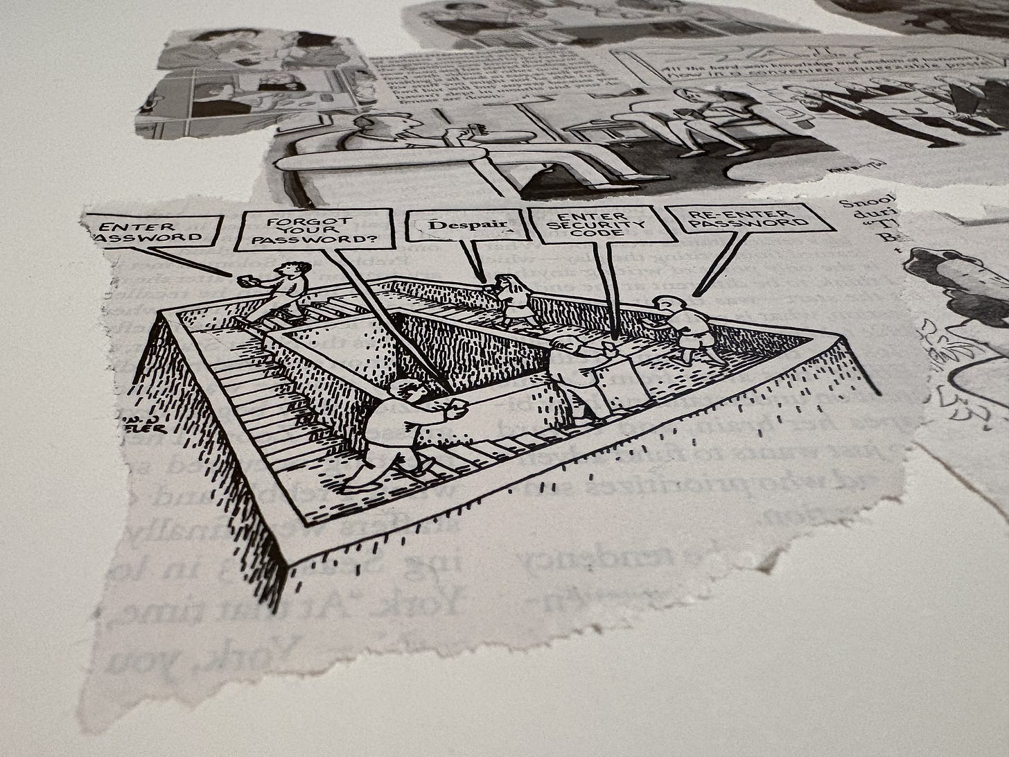 I am an avid fan of The New Yorker. I started saving magazines for this project in late 2022. I have been working on the collage for the past three months. Right before finishing, I ran out of clippings from my personal stash of magazines, and had to order additional stacks from 2020 and 2021 to complete the first phase of this project. Yes, there will be a second phase, to be released later this year.